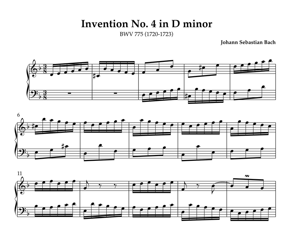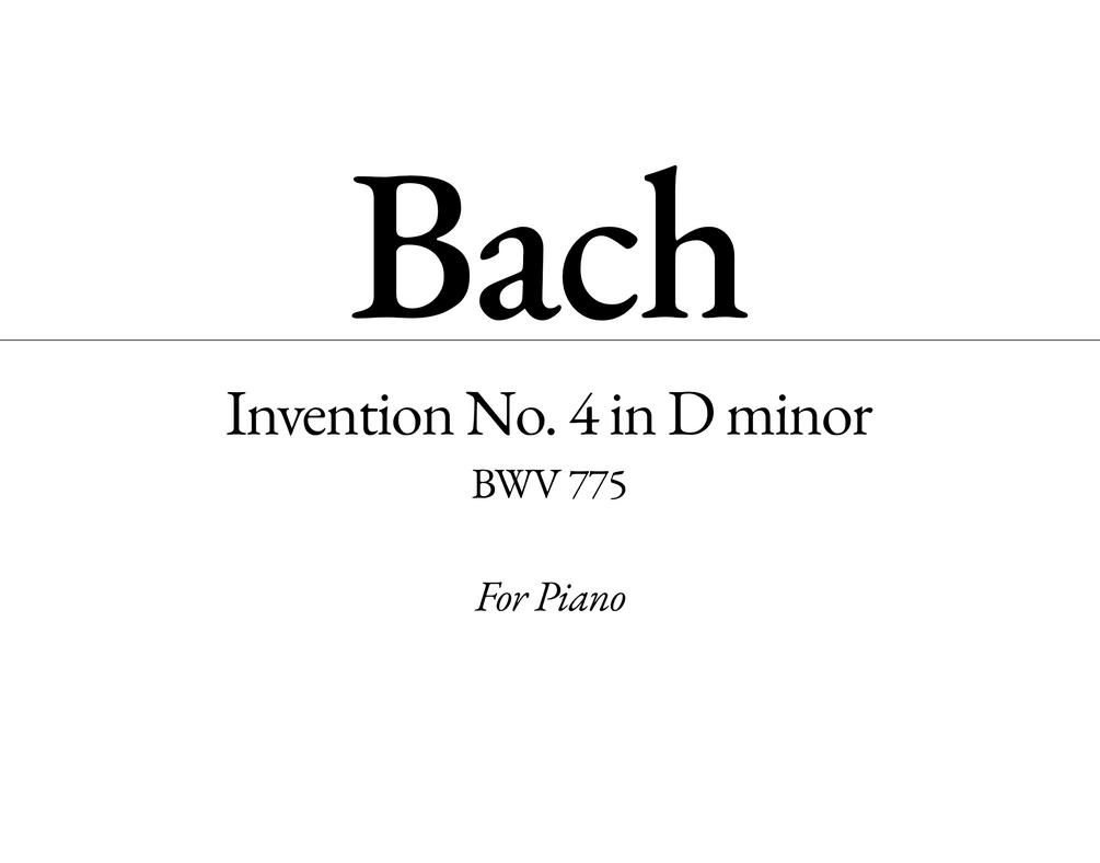 Historically faithful and typographically elegant engraving of Bach’s Invention No. 4 in D minor (BWV 775), based on original manuscripts.