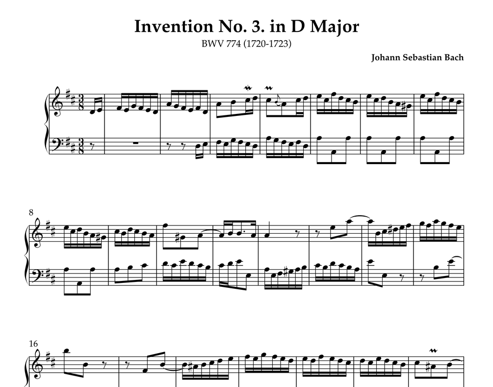 Johann Sebastian Bach - Invention No. 3 in D Major, BWV 774 (Ars Notae Edition)
