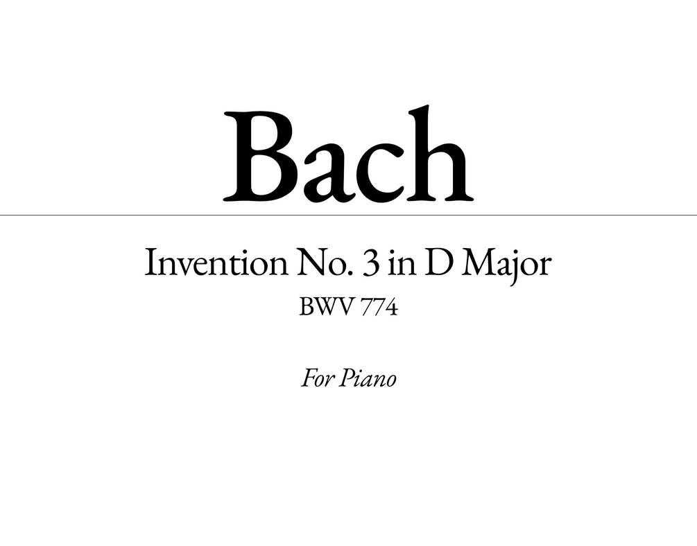 Historically faithful and typographically elegant engraving of Bach’s Invention No. 3 in D Major (BWV 774), based on original manuscripts.